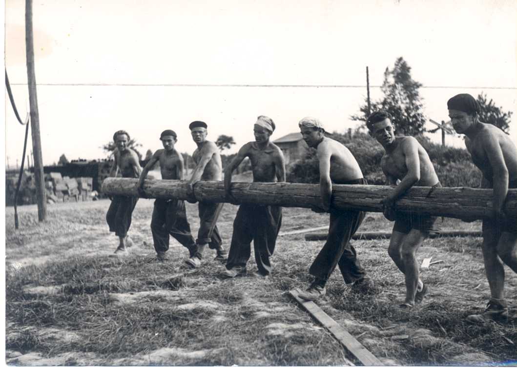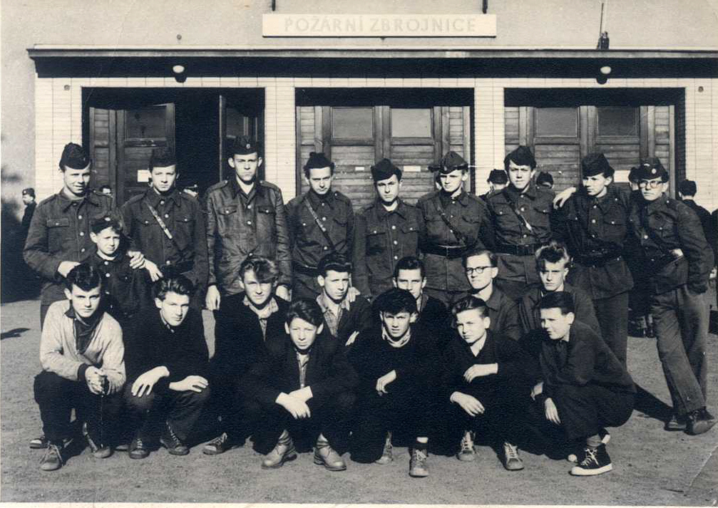 - Fotografie č.4 – Požárníci a učni Odborného učiliště Státních pracovních záloh NHKG – 1957