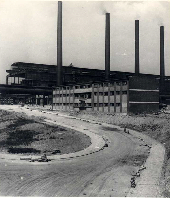 - Fotografie č.5 – Sociální budova vysokých pecí v pozadí ocelárna – 1953