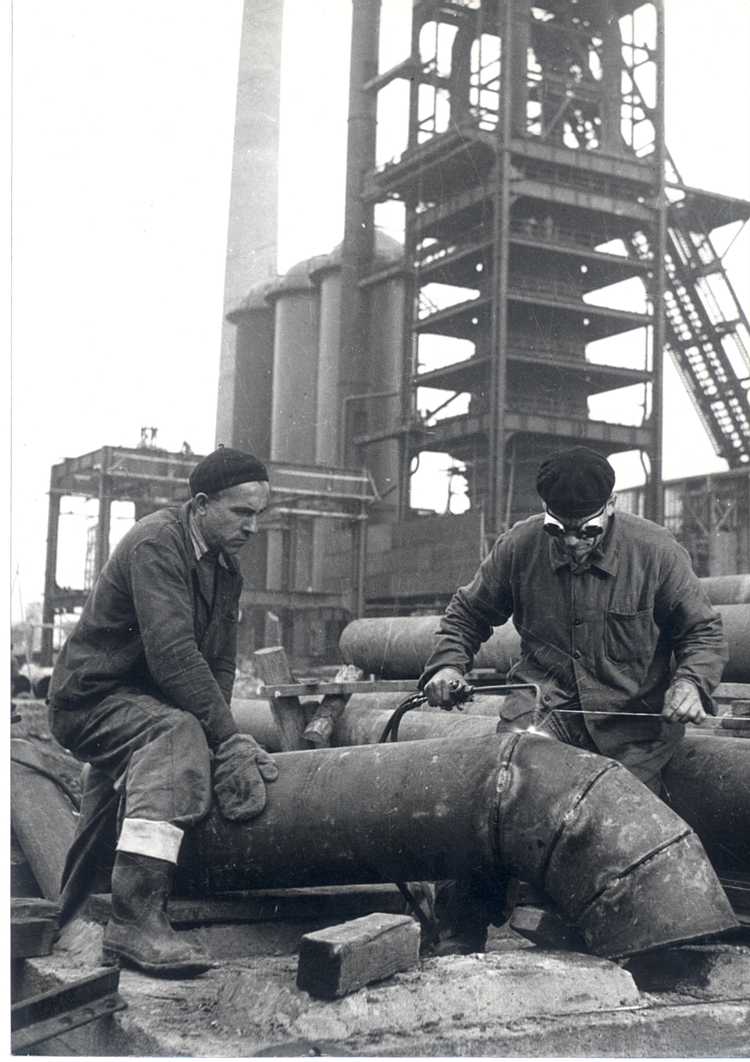 - Fotografie č.6 – Svářeči svařují armaturu u vysoké pece – 1951