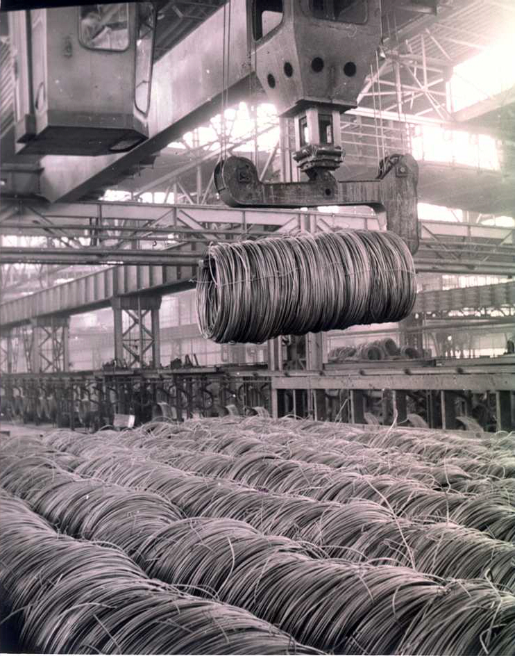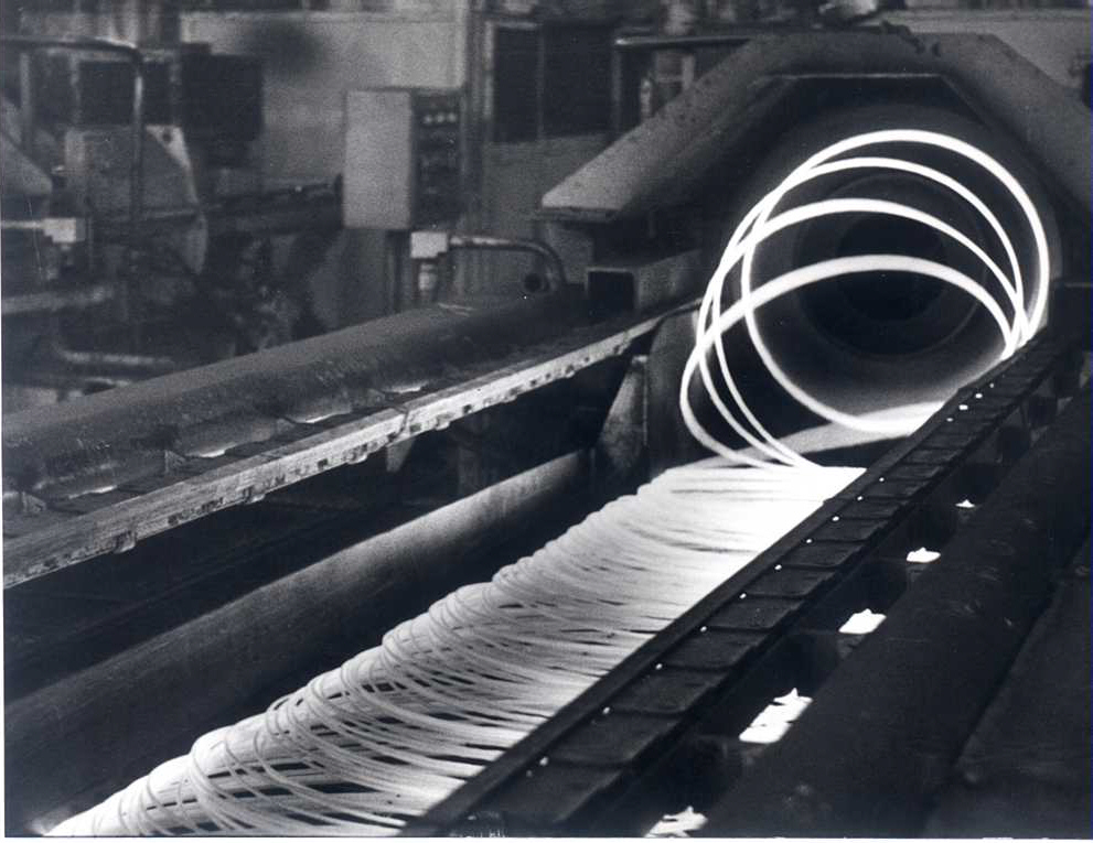 - Fotografie č.5 – Válcovna – výběh svitků na nové kontidrátové trati – 1973