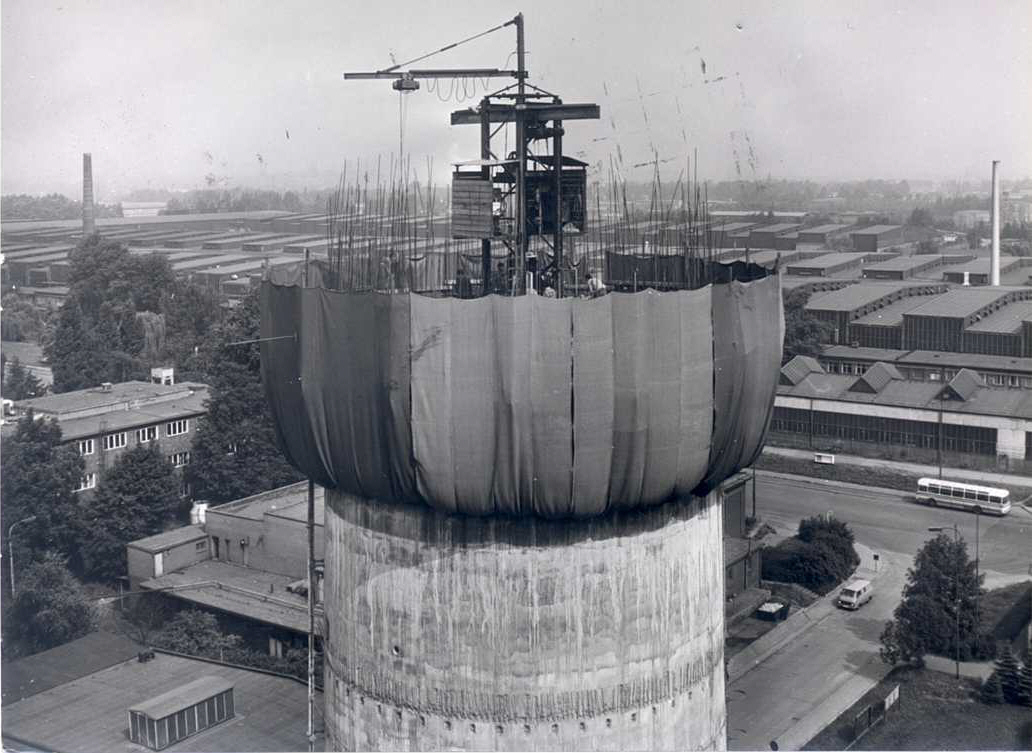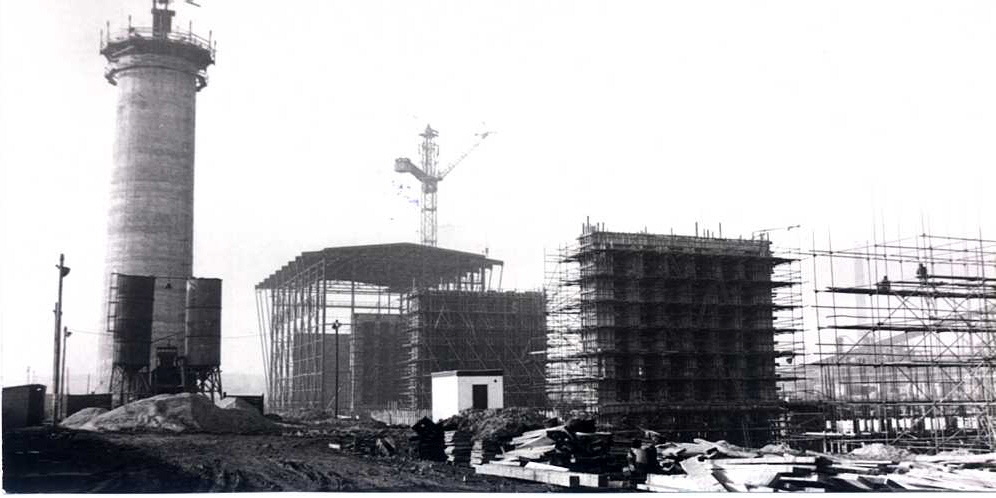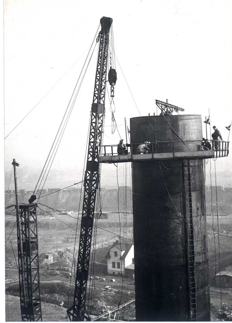 - Fotografie č.2 – Stavba nového elektrárenského komína – 1986