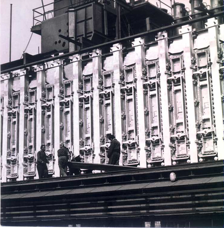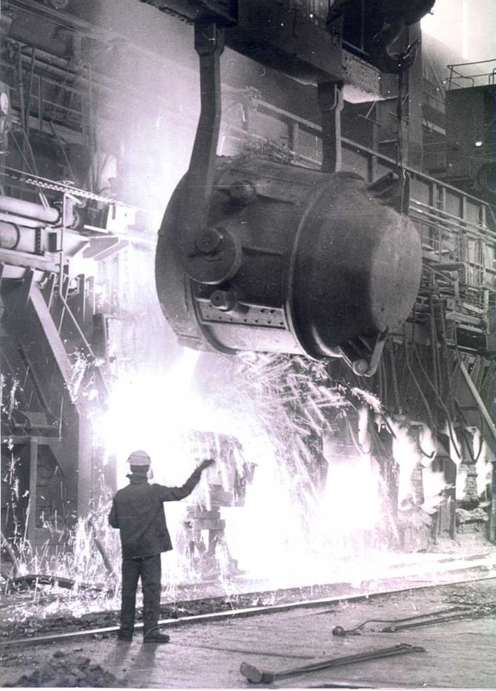 - Fotografie č.3 – Ocelárna – odlévání železa na MB peci – 1967
