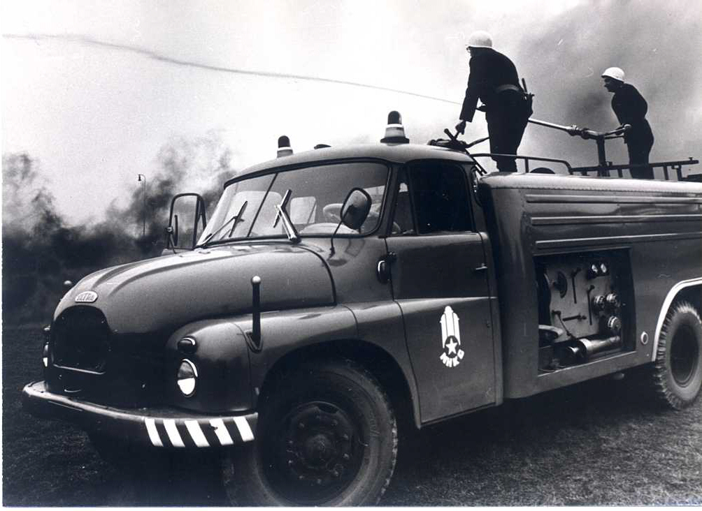 - Fotografie č.2 – Požárníci – hašení s použitím lafetových proudnic – 1975