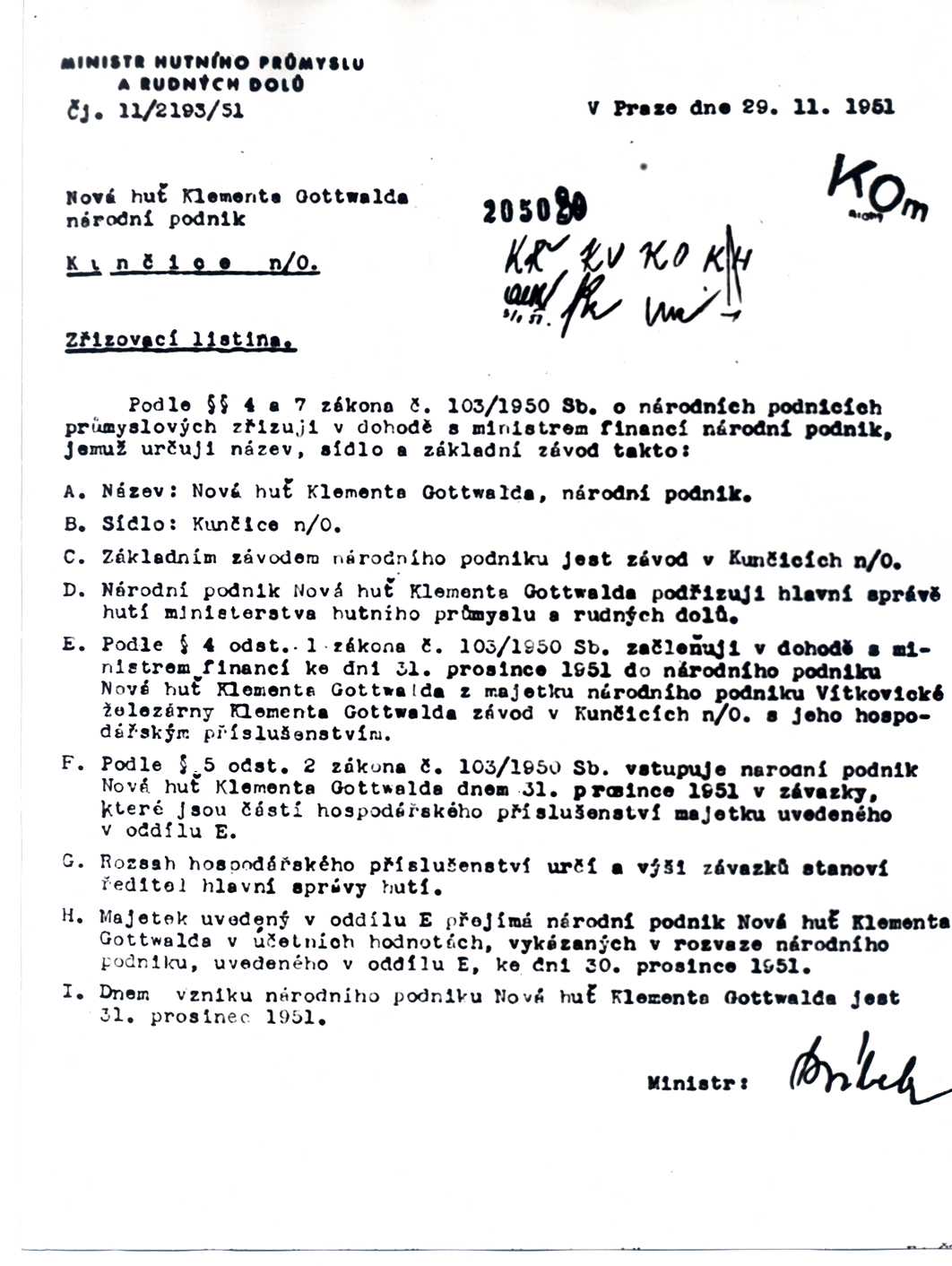 - Fotografie č.9 – Fotokopie zřizovací listiny NHKG -1951