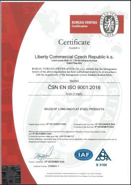 Certificate QMS – Liberty Commercial Czech Republic k.s.